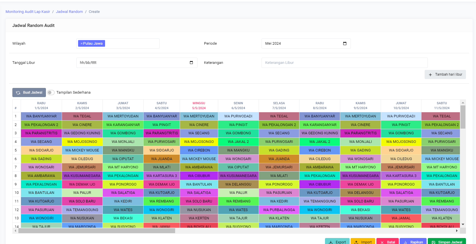 This system is used to create audit schedules with predetermined rules and regulations for audit reporting at PT. Eternal Color Partners Together.